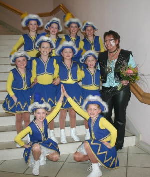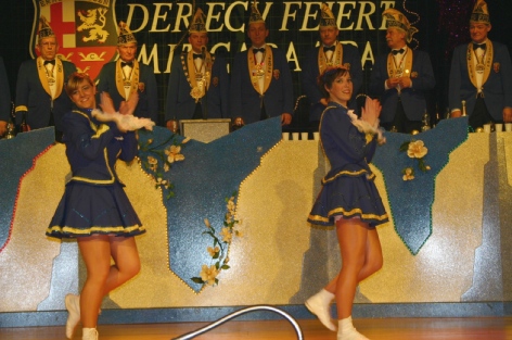 | 1. Vorsitzender Hans Magdziak ehrt Michael für seine gute Arbeit in den letzten Jahren. | Die Tanzmariechen der ECV Stefanie Nick und Eva Hickmann (von lks.) |