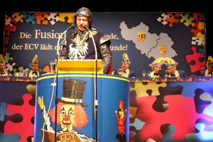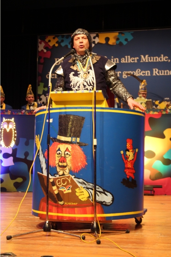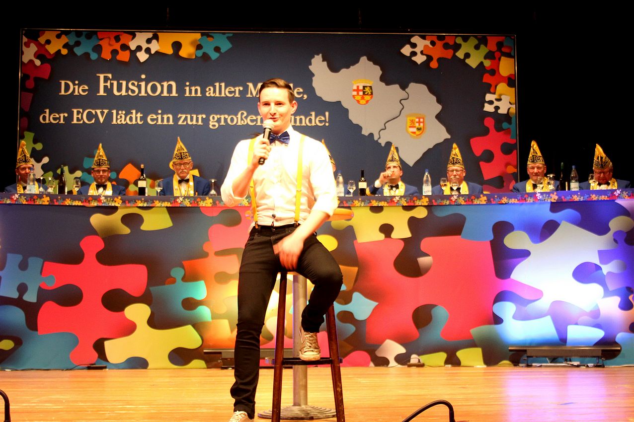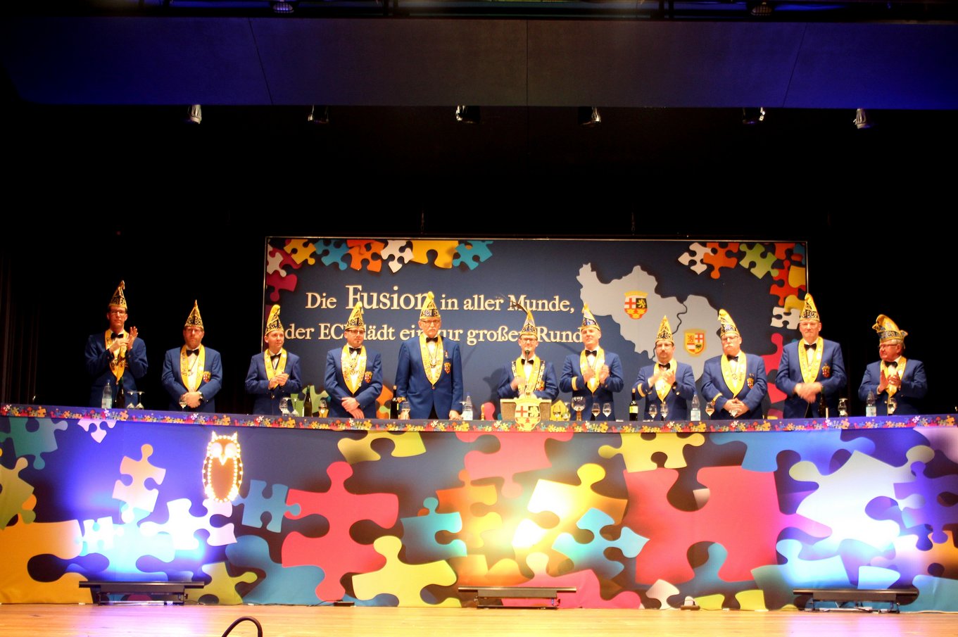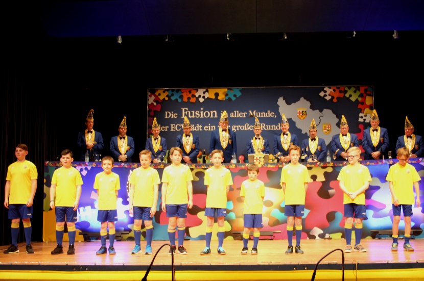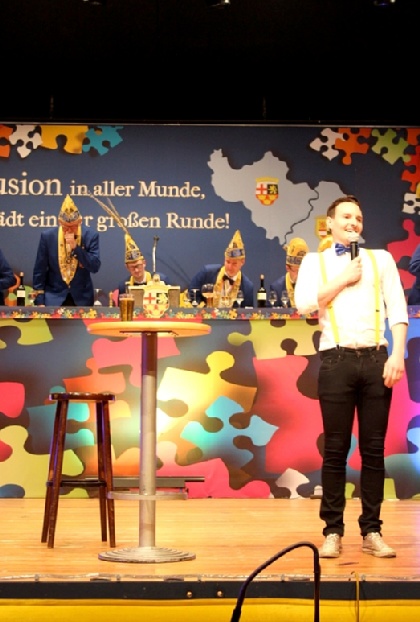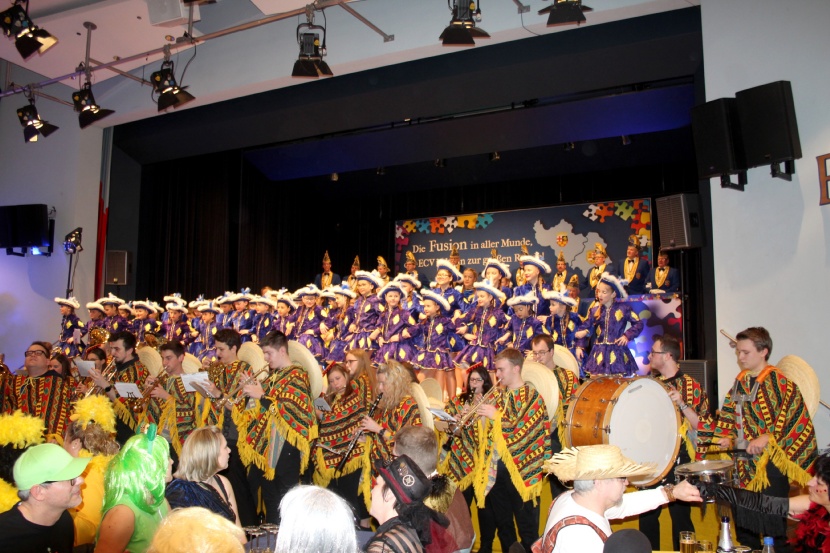 | Der Elferrat des ECV mit Sitzungspräsident David Mil der souverän durch die Sitzung führte. | |